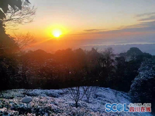 一夜之间,霜雪让整座蒙顶山“白了头”。