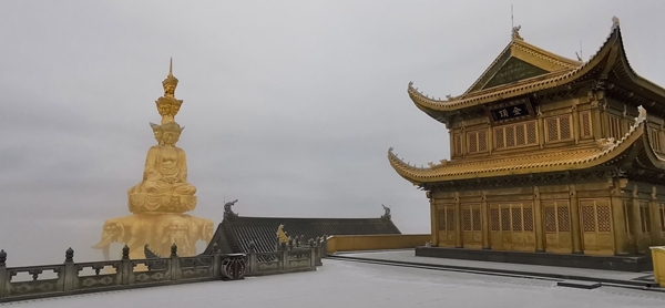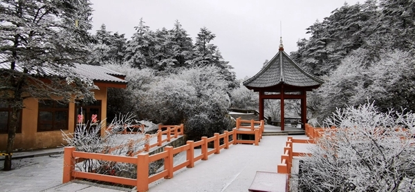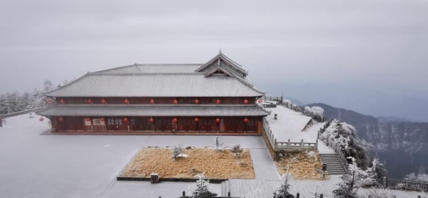 四川在线消息(记者 王博尔)2月15日,寒潮来袭,乐山峨眉山景区迎来一场降雪,让峨眉高山区银装素裹,分外宁静。