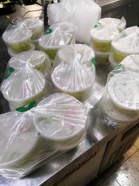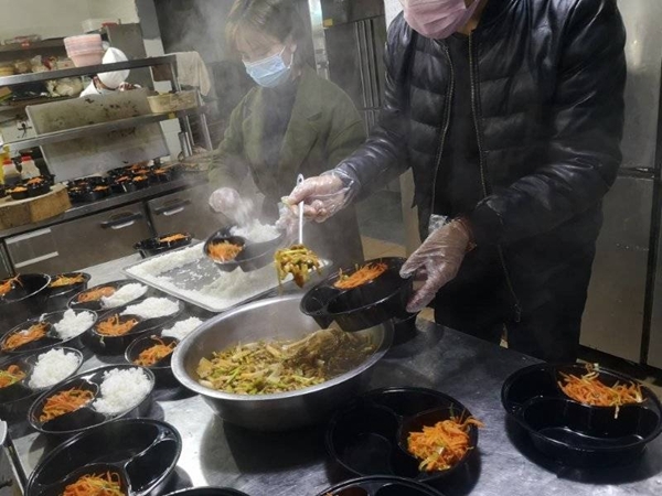 不仅如此,干老四雅鱼饭店第一江岸店还决定为每天100名值守在高速卡点的一线防控人员送盒饭,已经连续送了8天。“每天两荤一素,还要配汤。今天吃的是洋葱炒肉、西芹炒腊肉、白萝卜丝和西红柿豆腐汤。”李仙说。