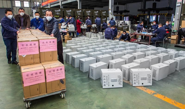 “成都经开区相关部门非常重视,不仅及时对我们复工、防疫进行指导,快速通过复工审查,还为我们提供了1000个口罩等防疫物资,从各个方面帮助我们尽快恢复生产。”张社林说,目前,已有五六十名工人复工,每天工作十几个小时,加班加点生产组装,一天可以组装100多台。目前,已经完成的近300台设备,将全部送往一线。“我们的人防产品直接用于疫情防控第一线,希望为打赢这场没有硝烟的战斗贡献力量。”