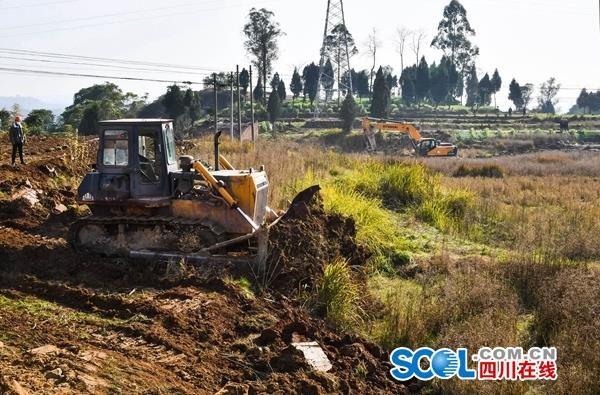 2月17日上午,广安市广安区彭家乡梯子村,挖掘机和推土机来回清理地表附着物,发动机的轰鸣声打破了山村多日来的寂静,广安人期盼已久的S205线广花路改造工程正式开工。