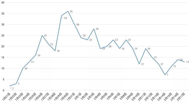 四川省新冠肺炎每日新增确诊病例变化曲线图