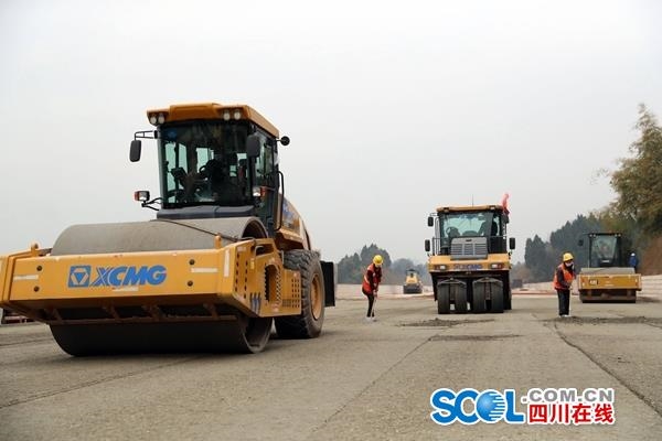 2月18日8时30分,30余台摊铺机、压路机、装载机开进了成都天府国际机场高速公路K36+500工地,65名中国中铁建设者打破了工地的沉寂。
