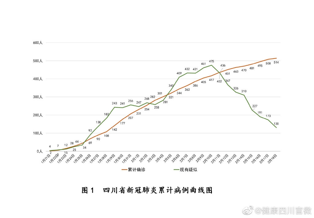 截至2月19日0时,四川省累计报告新型冠状病毒肺炎确诊病例514例,涉及21个市(州)。现有疫情县(市、区)98个(增加龙马潭区1个,减少九寨沟县、九龙县、新龙县、冕宁县等4个)。