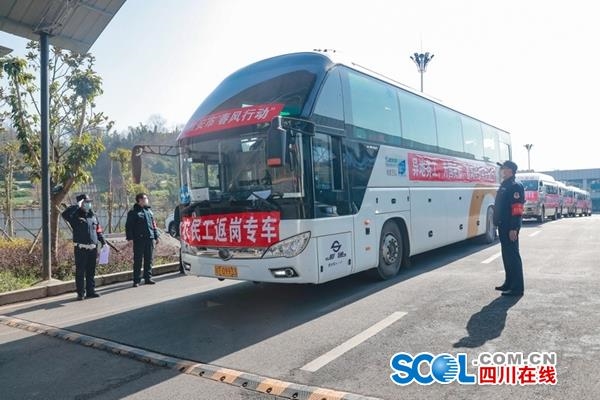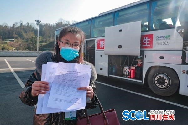 49岁的古加贵是宴场镇人,在西店镇一家电器企业打工。和大多数农民工一样,每年春节,他都要坐火车回老家过年。原计划过了春节就返程,没想到因新冠肺炎疫情,成都到宁波的火车停运了。假期早已超期,工厂正缺人手,主管每天催促,古加贵急得不得了。直到镇上传来消息:区上将包车送农民工去宁波。他喜出望外,赶紧订票,终于赶上了今天的班车。
