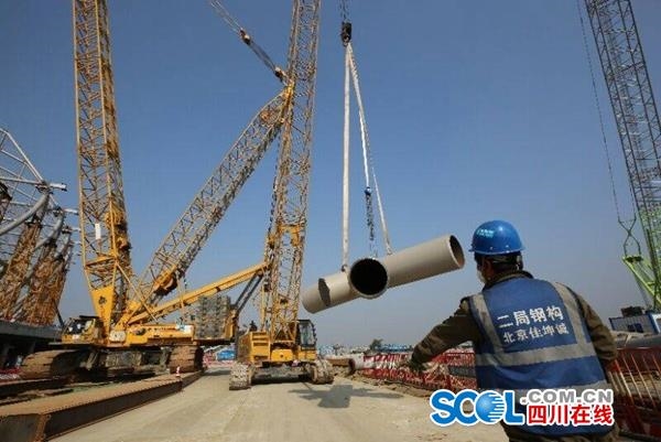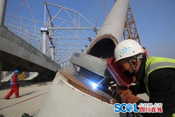 四川在线消息(廖玉蓉 记者 罗向明)2月19日,春阳高照。成都市龙泉驿区东安湖体育公园建设现场,工人们做好防护措施忙碌在各自的岗位上。塔吊平行移动,在蓝天下画出美丽的弧线;焊接钢结构闪烁的蓝光,与蓝天白云辉映,将人勤春早的画卷勾勒得十分绚丽。