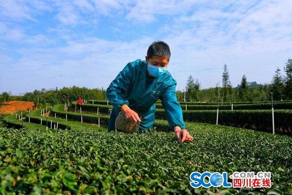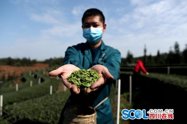 四川在线消息(廖胜春 高银松 记者 魏冯 /文 廖胜春 /图)“先测量体温、消毒、戴好口罩,再到各自的区域采摘……”近日,纳溪区大渡口镇天堂村拂羽茶园里,茶叶种植大户曾茂林正在告诉采摘工人疫情防控注意事项,一行行修剪整齐的茶树迂回曲折、缠绕山间,勾勒出一道靓丽的风景。