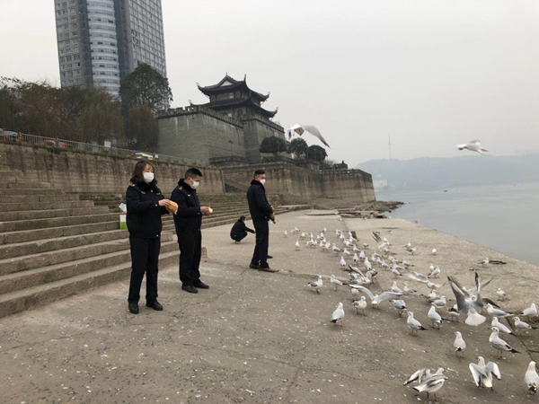 2月19日,记者从江阳区综合行政执法局获悉,该局联合北城街道,组织泸州“绿芽”环保志愿者和执法人员专人定时投喂滨江路红嘴鸥。目前,鸥粮准备充足,在广大市民在家抗疫的特殊时期,滨江路红嘴鸥过冬不会断粮。