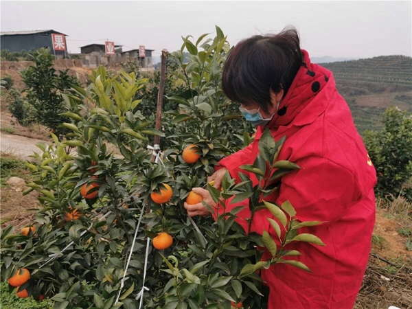 2月18日,李淑明听同村人提起镇上的柑橘基地正在招采摘工人,按天结算工资。想尽快找到工作的李淑明联系上了负责人邹建华,表示自己想在基地打工,邹建华回复得很爽快:“欢迎,我们正缺采摘工!”