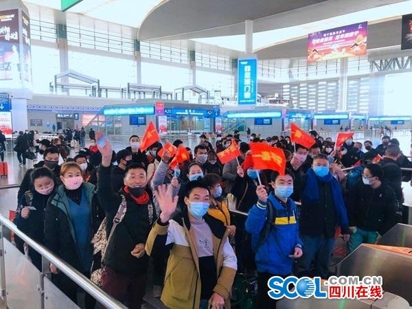 2月20日上午11:30,满载着917名川籍农民工的D4755次返岗专列,从成都东出发一路驶往广州南。这是今年春节后我省首趟开往广东省的农民工返岗专列,也是我省与广东在新冠病毒疫情期间劳务协作共识达成后,开行的首趟农民工返岗专列。此次专列开行,极大满足了疫情期间我省农民工外出务工需求,同时也为广东省企业复工复产提供了劳动力支持。此趟专列票务费用由广东省人社厅承担,农民工免费乘坐。