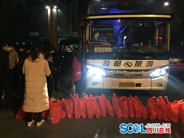 四川在线消息(曾鹏程 记者 秦勇 文/图)2月20日早上6点,一辆自贡市“春风行动”农民工返岗专车停靠在市客运中心,等待即将返岗的22名赴粤农民工。