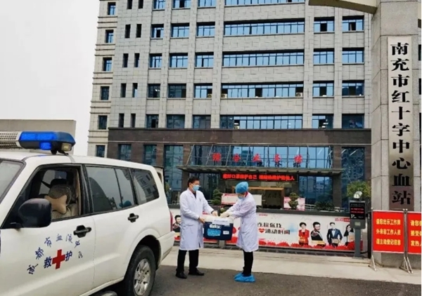 在紧急完成血液调配手续后,成都市血液中心储血供血科副科长张永鹏随急救送血车出发前往南充,将3袋共计300毫升新冠肺炎康复者恢复期血浆运送至南充市中心血站。
