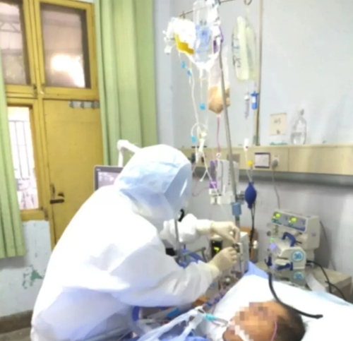 经过医院输血科交叉配血及血浆复融等系列准备就绪后,第一时间送至医院的ICU重症监护室,患者开始接受新冠恢复期血浆输注治疗。