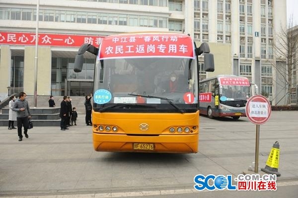 四川在线消息(肖开丰 顾朝辉 记者 余如波)2月20日,中江县第二批45名农民工乘上返岗复工出行免费专车,前往全国重点铁路工程项目——北京至沈阳铁路客运专线建设现场。同日,中江县11个乡镇的70名农民工乘上成都至广东高铁专列出发返岗。
