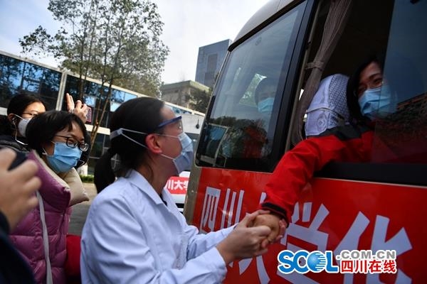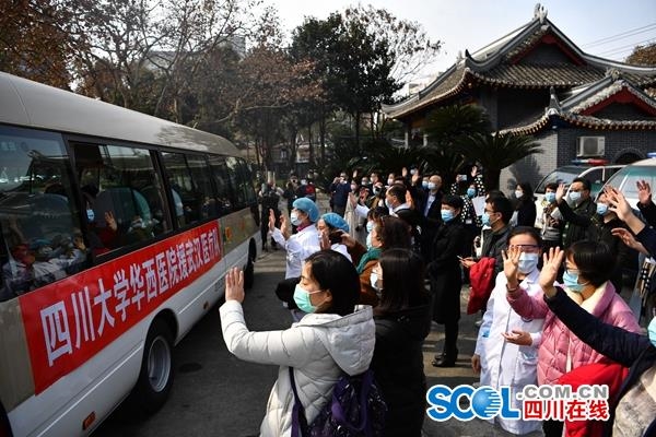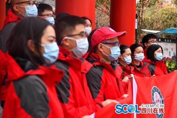 四川在线消息(记者 范芮菱 摄影 何海洋)“武汉是个战场,希望大家到了那里,就要全力以赴!”2月21日上午11点,四川大学华西医院13名医护人员集结完毕。他们是该院派出的第四批援助武汉医疗队,也是四川省第九批援助湖北医疗队的成员。