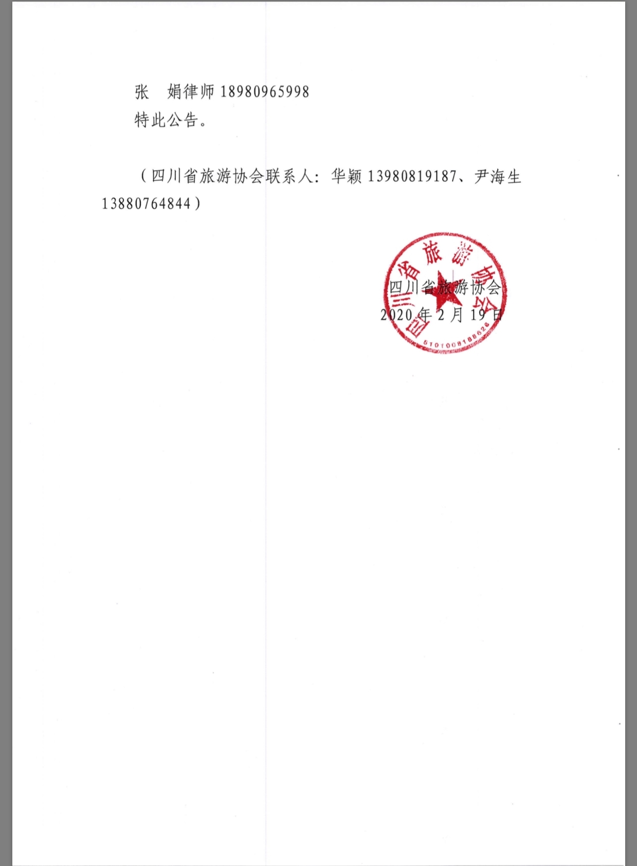 为帮助游客、旅行社等尽快解决好纠纷问题,2月19日,四川省旅游协会发布了关于提供公益法律服务的公告,开通法律咨询通道,推出公益法律服务。此服务针对因疫情带来的文旅行业合同纠纷、劳资矛盾、资金拖欠等问题,依法维护人民群众 、文旅企业和从业人员的合法权益。