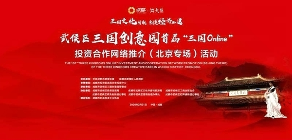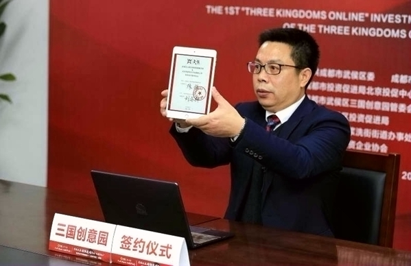 当日下午2点,在武侯区三国创意园,首届“三国on line”投资合作网络推介会(北京专场) 在线举行,吸引了来自北京的27家企业参与。在这场特殊时期用特殊形式举办的推介会上,北京悦瑟华礼文化有限公司、北河三(北京)文化传媒有限公司、中骏天宝资本管理(北京)有限公司等企业与三国创意园联网签署了投资合作协议,投资总额12亿元。据了解,签约项目均为文化创意产业,未来将以三国创意园为基地,辐射西部地区,开展影视制作、文化演出、音乐制作等业务。