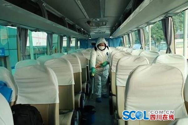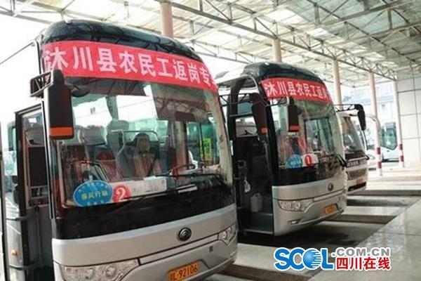 这是沐川县首批务工人员返岗专车,共有2辆,从沐川客运中心出发,前往浙江省江山市指定集合站点。