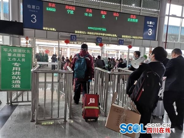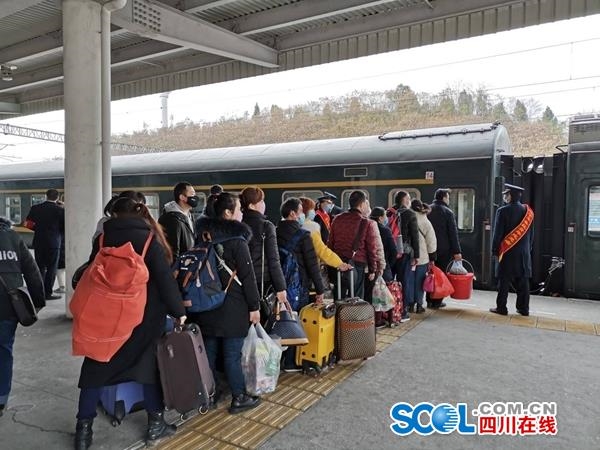 “单位催了好几天,今天坐上返程列车,睡的卧铺车厢。”在绍兴市某卫浴企业工作的黄勇说:“我和我妻子、娃儿从内江威远过来的,我弟弟开车送到遂宁高速路口,专门有车在那里接我们到火车站。”