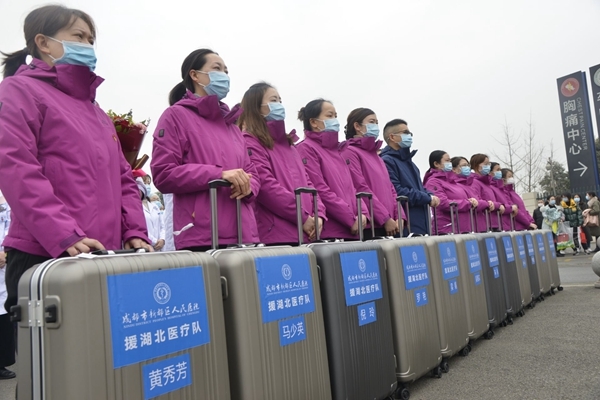 四川在线消息(熊林海 记者 张红霞)“我们将不忘初心,牢记使命,发挥出专业的技术,为方舱医院的患病群众带去优质的医疗服务……”2月22日上午,成都市新都区第二批援助湖北医疗队,也是新都区人民医院的首批支援湖北医疗队举行简短出征仪式。12名来自新都区人民医院的医护人员将出征湖北战“疫”前线,驰援方舱医院。