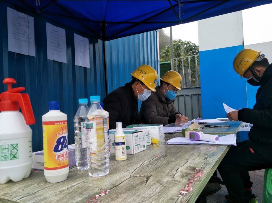 按疫情防控期间工程项目复工复产的相关要求,项目方对管理人员和施工人员进行全面排查,做到合格一名上工一名,切断传染源。在防护物资准备方面,除了给员工准备口罩外,还实行定期消毒,定点宿舍、定点用餐,人员体温测量常态化,一旦发现体温异常人员,将送隔离室立即隔离,并及时上报有关单位。此外,针对员工用餐问题,项目方专门设置有户外食堂,集中采购原材料,安排专人定点制作,采取分批次分餐制。工地上还设置了专门的宿舍,定人定房间。