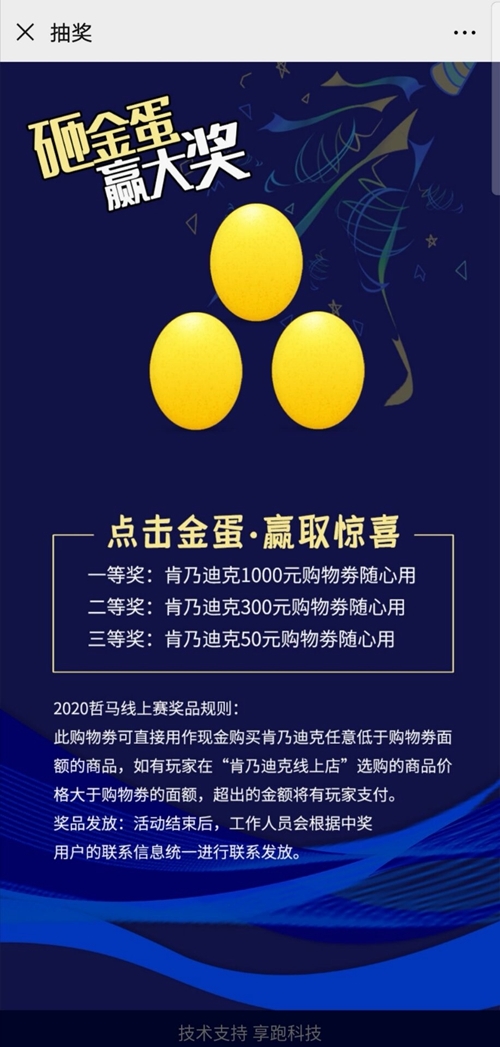 2020哲马线上赛在答题环节中将线下比赛中才存在的“补给站”的概念与线上答题比赛的环节相融合,让参赛选手们在答题过程中也可有种“跑比赛”体验感,同时也将赛事举办地成都龙泉山城市森林公园和金堂、淮州新城、五凤溪的目的地宣传贯穿其中。2020哲马组委会方面表示这次比赛将“云”和“赛事”融合在一起对他们来说也是首次尝试。组委会还表示,这一次创新推出“2020哲马线上赛”旨在让参赛选手将空闲时间利用起来的同时,在赛前让参赛选手再一次仔细且全面地了解哲马从起源到内涵等,也为后期的比赛做充分准备。让疫情期间“宅”在家的选手们,足不出户就能感受到本该在2月23日获得的欢乐。在奖项设置方面,哲马线上赛更有2020哲马的赞助商——肯乃迪克提供的万元大奖。