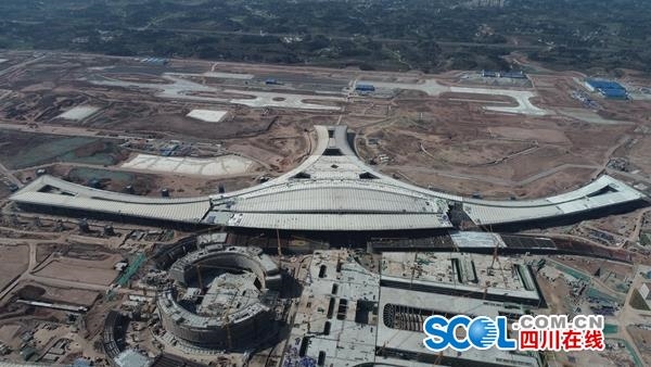 2月24日,成都天府国际机场T1航站楼正进行有序施工——2月14日,中建八局成都天府国际机场T1航站楼项目顺利通过复工审批,于2月17日正式复工。