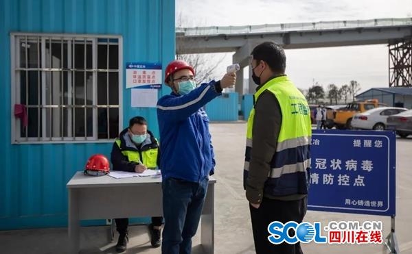 四川在线消息(记者 张明海)2月25日,由中国五冶承建的成都三环路成仁快速路节点立交建设工程项目施工现场机械轰鸣,进场施工的工人佩戴着安全帽和口罩,在工地入口进行过体温检测后,有序进场作业。