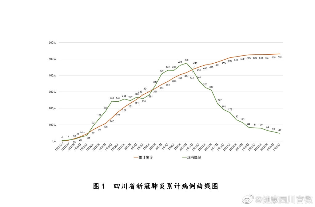 截至2月26日0时,四川省累计报告新型冠状病毒肺炎确诊病例531例,涉及21个市(州)。