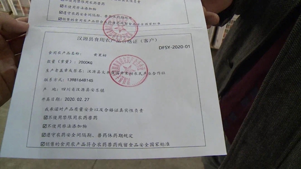 雅安市农业农村局有关负责人介绍了开展食用农产品合格证制度试行工作的好处:“合格证制度推广,第一方面将加强食用农产品的安全;第二方面是让企业自己对产品质量进行承诺,保证销售和生产的产品,达到国家安全标准,让老百姓吃得放心。”