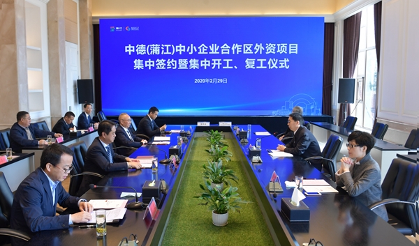 四川在线消息(记者 吴亚飞)2月29日,蒲江县举行中德(蒲江)中小企业合作区外资项目集中签约暨集中开工、复工仪式。签约仪式上,蒲江县人民政府通过网络与企业连线,完成德国泽立超声刀、俄罗斯生物照明系统研发及灯具生产、明森医疗器械、超德创电磁制动器、联士科技电缆智能装备制造、中高电气发电机组及新风系统6个项目在线签约,协议总投资10.32亿元。