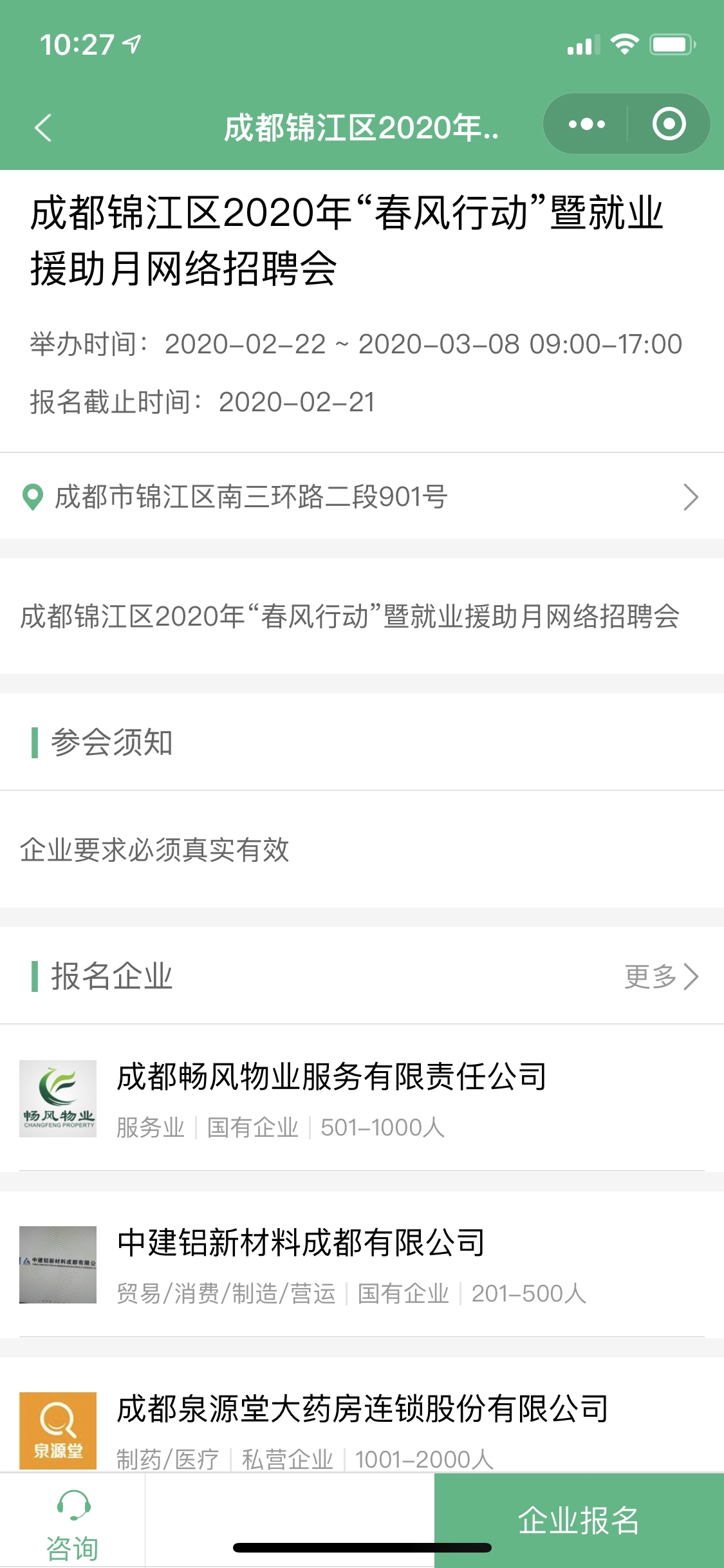 成都市锦江区为做好线上招聘会,统筹多方就业资源。提早组织动员区域内各公共就业服务、人力资源服务等机构,广泛征集岗位信息并及时发布上网;积极引导求职者充分利用 "省、市公共招聘网""锦江就业政策宣传微信公众号""‘春风行动’线上招聘会"等网上载体进行求职。