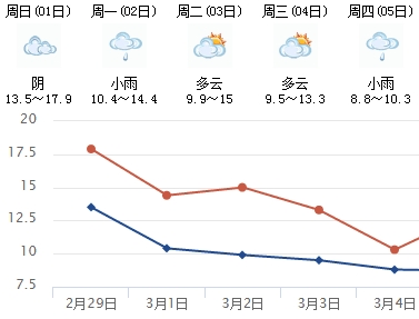今早,中央气象台预报:预计三月初,我国仍将受到冷空气的频繁影响,未来一周北方大部气温起伏波动明显,而江南大部还将持续阴雨。