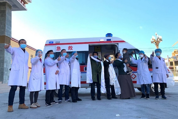 四川在线消息(肖宵 记者 游飞 文/图)2月29日下午,道孚县9名新冠肺炎确诊患者从道孚县第二病区(道孚县中藏医院)治愈出院。至此,甘孜州累计78名确诊患者,已有40人治愈出院。