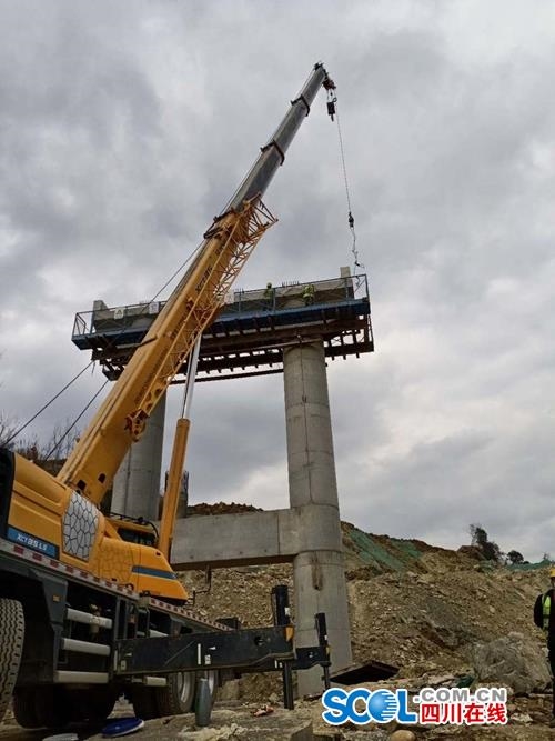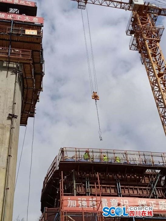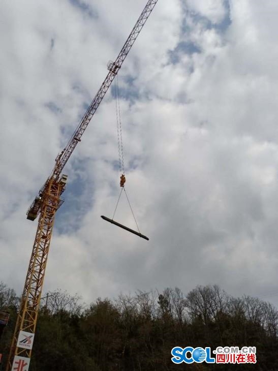 2月29日,广平高速平武段全面复工。当天上午,广平高速TJ14标涪江大坪特大桥旁,在技术人员的指挥下,塔吊不断地往桥墩上运送钢筋等建筑材料。
