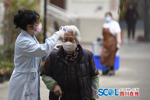 "体温36.5度,血压正常,心率正常。"每当听到自己都一切正常,成都市锦江区孝慈苑养老院刘奶奶心里便踏实了,“每天都有护理员给我们消毒、测体温、测血压,看到大家都很努力地防控疫情,我也不那么担心了。”孝慈苑养老院在疫情防控中,重点做好老年人的精神鼓励、情感关怀和心理疏导,缓解他们对疫情的焦虑恐惧。