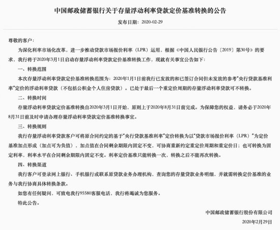 例如,招商银行拟于4月上旬统一将客户在转换范围内的商业性个人住房贷款的定价基准转换为LPR。届时,该行会通过招商银行App、招贷App、短信、电子邮件等方式中的一种或多种向客户发出此次浮动利率贷款定价基准转换的通知。
