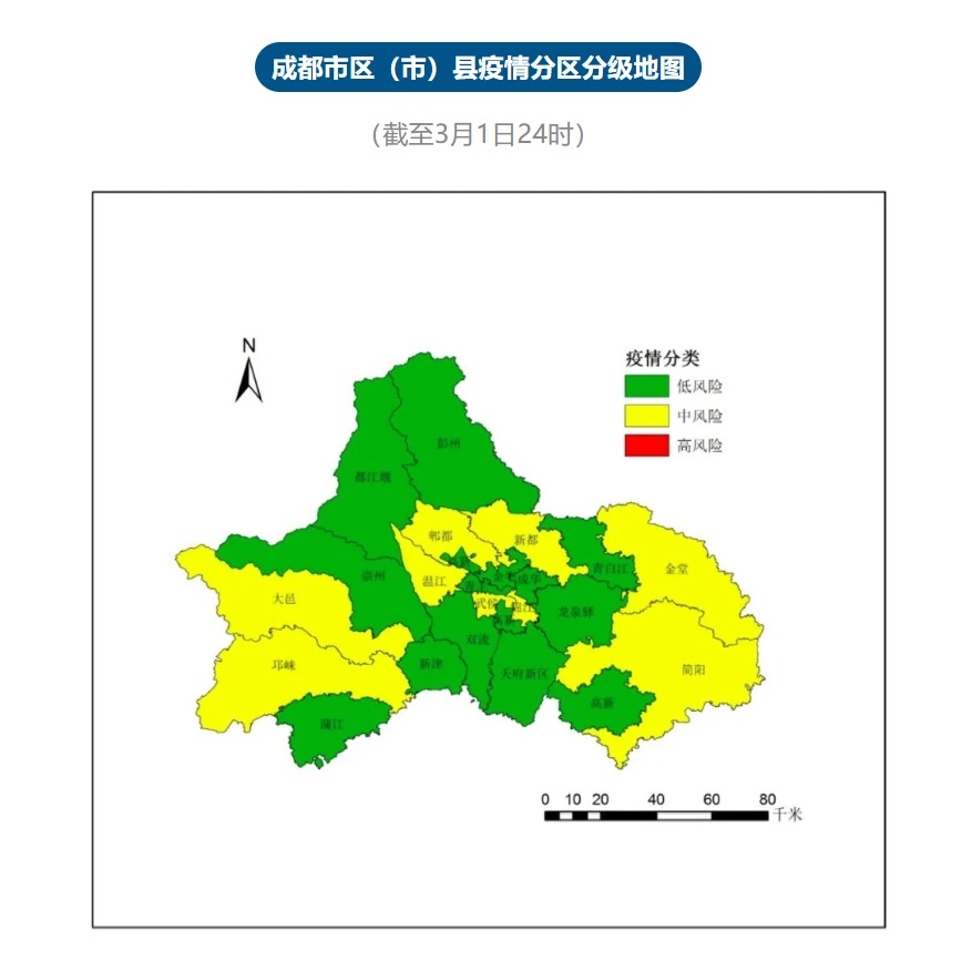 但是,根据最新成都区(市)县疫情分区分级地图显示,锦江区仍为中风险区。另外,与昨日相比,成都其余区(市)县疫情分区分级地图没有变化。
