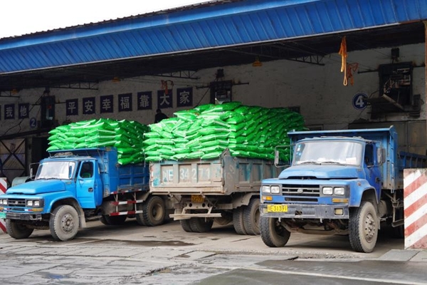 泸天化股份公司包装码头,不少车辆前来拉运尿素。