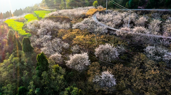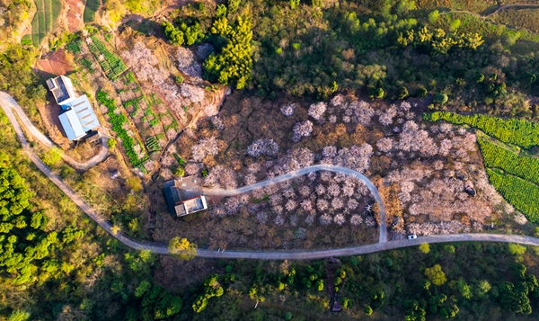 四川在线消息(记者 陈碧红)柔情三月春风暖。隐藏在成都青白江区福洪镇南岳村的杏花树林,正次第竞相开放,在深丘山林中形成一片粉白色的花海。