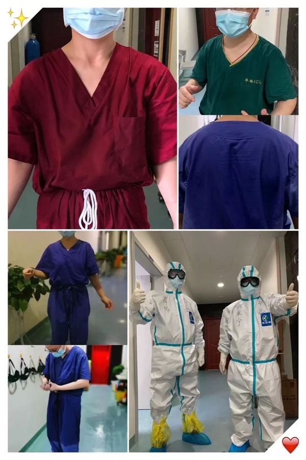 “这可能是最神秘的部分,下面我来揭秘——我们被分配接管武汉大学人民医院东院区的23和24病区,分别在5号楼的14楼和15楼,全部收治重症患者。说的这么详细你也进不来,进出全靠出入证和颜值。每个病区,3个医生一组,按8小时一轮换,护士按4小时一轮换,大家共同携手完成医疗和护理工作。”徐原宁幽默地写道。