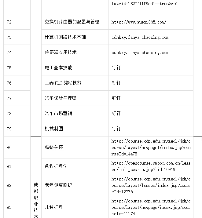 成都市市属高校、职业院校技能培训资源