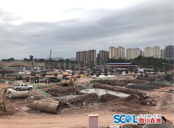 泸州市龙马潭区九狮路的川南城际铁路泸州高铁站建设现场,工人们正在进行站前工程歼灭战,抢抓工期。陈向前 摄