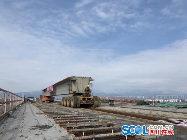 四川在线消息(彭俊生 曾苗 记者 余如波)3月4日,在位于什邡市境内的成都经济区环线高速公路北段——德都高速人民渠特大桥桥面上,工人们适度分散,正忙着湿接缝钢网焊接。另一旁,一块长约30米、重达100吨的预制梁缓缓运上桥面。