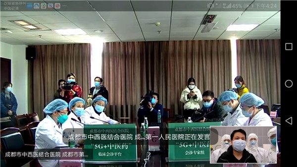 这一天,他在医生王巍的陪同下,利用最新5G远程问诊技术,与成都市第一人民医院的医疗团队成功连线。成都市第一人民医院的院领导与众多呼吸科专家通过视频,为病人王巍量身制定了治疗方案,并在第一时间将专门为病人王巍配制的中药送到了病人王巍的手上。而且,成都市第一人民医院的专家还告诉病人王巍,之后将定期远程跟进医疗效果。