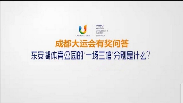 每期“大运会进社区”线上讲堂视频的结尾处我们都设置了一个“彩蛋”——有奖问答,只要在“运动成都”微信公众号上留言并正确回答问题,就有机会获得与大运会或体育相关的奖品。