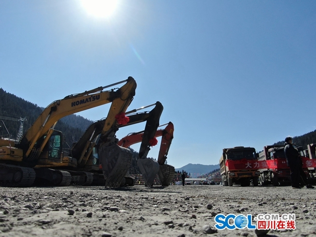 四川在线消息(记者 王眉灵 摄影 郝飞)又一条开进我省藏羌地区的动车铁路线来了!3月5日上午11时许,在阿坝州松潘县境内的黄胜关车站,各类工程车的轰鸣驱散了川西高原的寒冷,宣告西宁至成都铁路四川段建设启动。