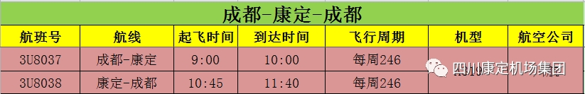 四川在线消息(记者 游飞)3月5日,记者从四川康定机场集团获悉,甘孜州内康定、稻城、格萨尔三大机场航线航班已于日前陆续恢复,调整后的航线航班为:成都—康定航班每周执飞周二、周四、周六,特价机票单程低至399元,往返低至699元;成都—稻城航班每天1班;成都—格萨尔航班每周执飞周一、周三、周五、周日。具体以预定时查询为准。康定机场集团航线航班查询订票热线:028—61512291。