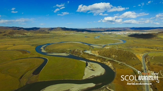 鸟瞰松潘国道(四川在线航拍四川资料图)