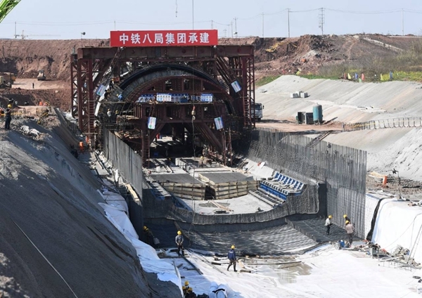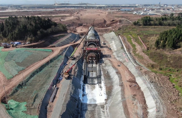据项目经理葛彪介绍,成自高铁是四川第一条设计时速为350公里/小时的高速铁路,此次施工的成自高铁下穿隧道,连接着成都天府国际机场,按照工期该隧道今年底将完成主体工程建设。